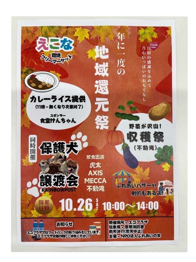 ①10月26日(日曜日)午前10時からふれあいエコプラザにて