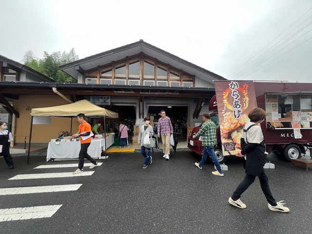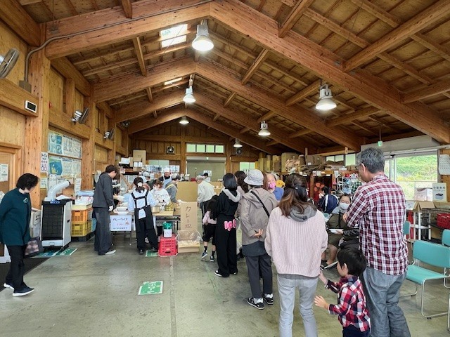 ふれあいバザーとして、何に一度の地域還元祭「スポンサー食堂 けんちゃんカレーの提供」、収穫祭として、なかのほう不動滝のや