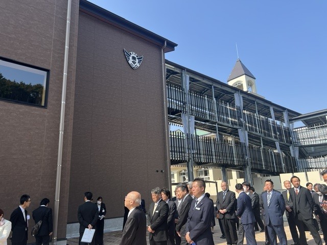 本日、未来への第一歩となる竣工式を迎え、 この新校舎が、生徒たちの探求心と創造性を育む場となることを期待しています